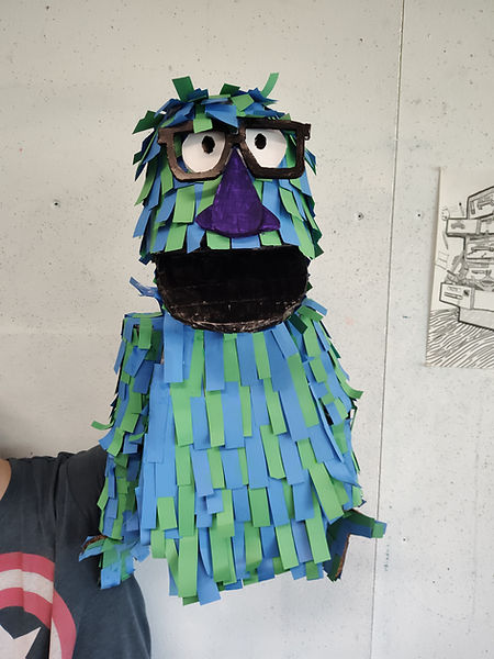 This puppet was an experiment to see if I could create a hand puppet entirely out of paper and paper-like materials. This character, which is frequently in my work, represents my inner self, showcasing my very muppet-like personality. He was used in a short film that I made called “Interview With Your Inner Self,” where we were both interviewed about our life; I gave the polite, vague answers, while he told the reality of life you wouldn’t necessarily tell a stranger.